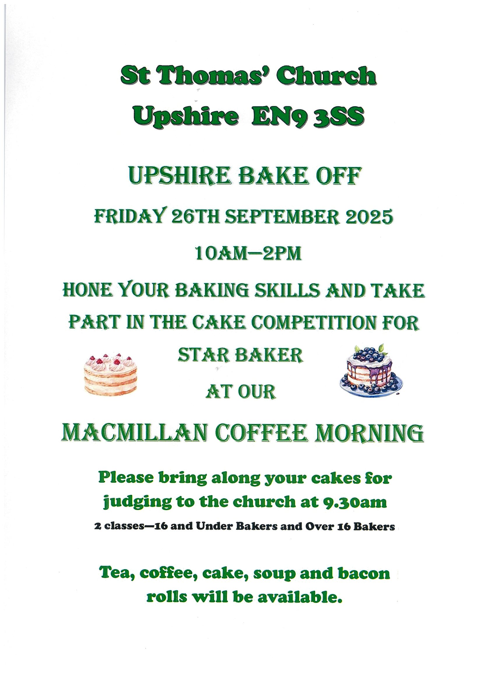 St Thomas' Macmillan coffee And Bake Off Morning- Friday 26th September 2025. 10am-2pm