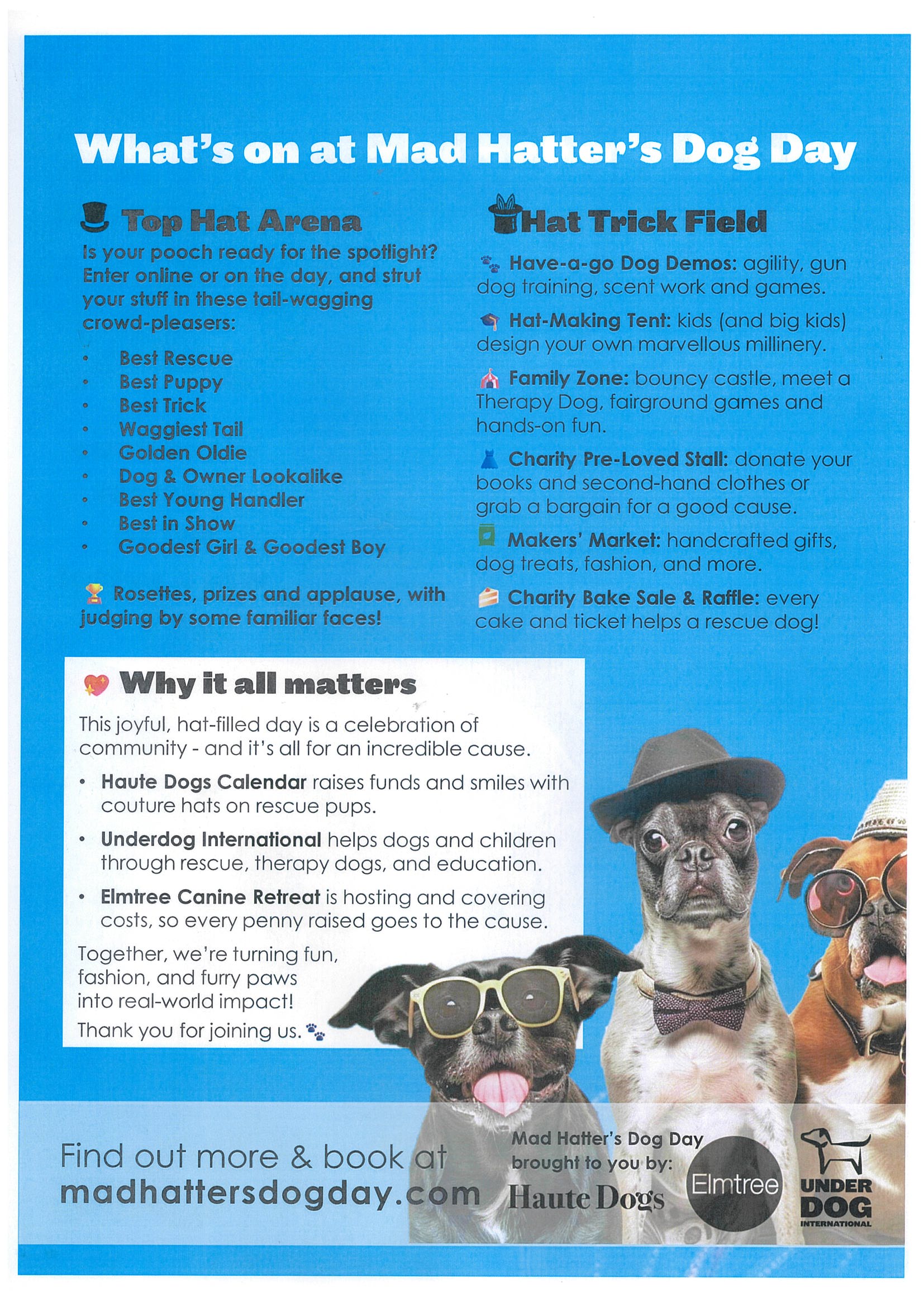 Mad Hatter’s Dog Day at Elmtree Canine Retreat, Sewardstone Rd EN9 3QF-Saturday 20th September 2025